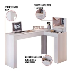 Ter uma escrivaninha Camarim Tânia no tom Branco, é uma peça super funcional que vem sendo muito da além das funções . Além de servir para estudar, para expor seu Notebook, livros ou materiais de escritório. Ela pode ser utilizada para organizar as suas maquiagens e produtos de beleza deixando tudo muito prático. Conta com Nicho Organizador, estrutura em MDP com acabamento Mob Print, uma tecnologia inovadora em que bobinas melamínicas recebem a pintura com tintas após a prensagem da chapa, ou seja, garante uma maior definição e finalização no padrão, além de proporcionar muito mais durabilidade e resistência ao produto. E aí, que tal garantir agora mesmo a sua?