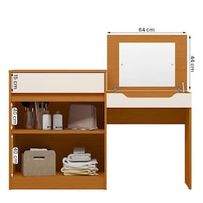 Material: MDP de 15 mm e 12 mm, espelho 45cm x 36cm, tampo basculante com divisória interna;