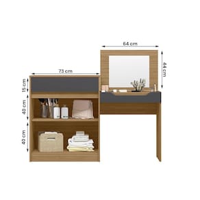Material: MDP, espelho 45cm x 36cm, tampo basculante com divisória interna;