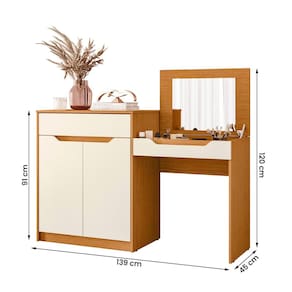 Material: MDP, espelho 45cm x 36cm, tampo basculante com divisória interna;