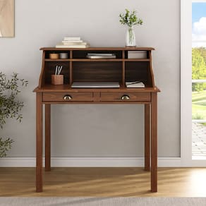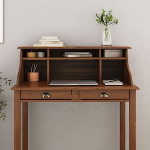 A Escrivaninha Marlene resgata o charme dos móveis clássicos com uma proposta funcional e elegante para o dia a dia. Com estrutura em madeira maciça e acabamento castanho fosco, ela combina design atemporal com um toque retrô que transforma qualquer cantinho em um espaço de inspiração.