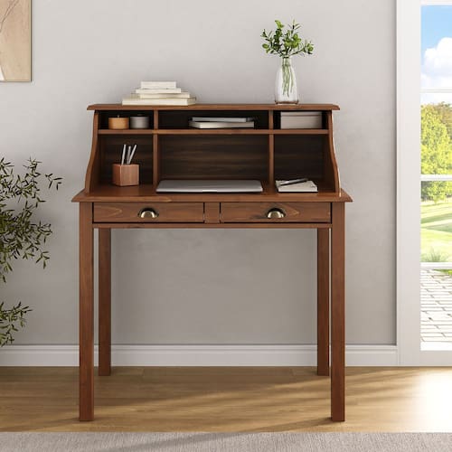 Seu formato tipo secretária garante praticidade com estilo: a parte superior conta com nichos organizadores perfeitos para armazenar livros, cadernos, envelopes e até objetos decorativos. No tampo, espaço ideal para notebook ou escrita confortável, com altura ergonômica e visual limpo.