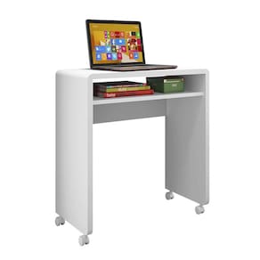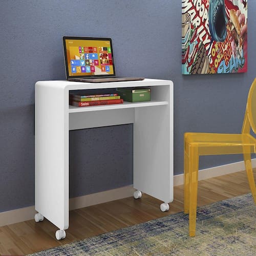 A Escrivaninha Smile é ideal para complementar seu ambiente. Estruturada em MDF de 25 mm com excelente acabamento em pintura U.V, conta com uma prateleira em MDP para que você organize seus objetos. Para facilitar na locomoção e na limpeza, possui rodízios ou se for mudar a composição dos móveis. Complemente seu ambiente com bom gosto e qualidade.