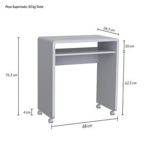 - Cômodo Indicado: Quarto e Escritório - Peso do Produto Montado: 17 - Peso Máximo Suportado: 50 - Medida do Produto Montado (LXCXA): 38,5cmX68cmX76cm - Acabamento: Pintura UV - Escala de Brilho: Acetinado - Material da Estrutura: MDF 25MM e MDP 15MM - Produto Necessita de Montagem?: Sim - Tipo de Gaveta: Não Possui - Quantidade de Pés: 4 - Tipo de Pés: Rodizios - Tipo de Porta: Não Possui - Quantidade de Prateleiras: 1 - Tipo de Prateleira: Fixa - Recomendações de manutenção: Pano úmido. Não aplicar lustra móveis. - Volumes: 1 - Garantia: 3 Meses