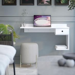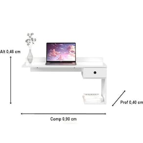 Escrivaninha suspensa com gaveta luxo elen - cores - comprar moveis para sua casa Cor: branco Escrivaninha suspensa é embalado com caixa reforçada nas laterais para não ocorrer no transporte. Vendido pela comprar móveis em casa para deixar seu ambiente mais bonito e sofisticado procure nossas redes sociais e confira todos nossos produtos e qualidade de atendimento : Dimensões do produto montado Altura: 467mm Largura: 900 mm Profundidade: 400 mm Caracteristicas 1 gaveta corrediças metálicas Material: mdp/mdf pode ocorrer variações de acordo com cada lote de fabricação Pintura uv Montagem: Este produto acompanha manual de instrução detalhando passo a passo de como montar. A montagem do produto deverá ser feita por um profissional, para que não ocorram danos no produto. não nos responsabilizamos por erro de montagem O produto acompanha kit para instalação. Atenção: a montagem não é oferecida pela comprar moveis em casa, a montagem do produto é por conta do comprador. Fotos ilustrativas não acompanham os produtos de decoração. Observações importantes: A é de 90 dias por defeitos de fabricação. Em caso de erro de montagem, uso inadequado do produto, ou outros acidentes do gênero esta não será acionada. Se no ato de recebimento do produto o cliente verificar que o produto não está em prefeito estado, principalmente por ocasião de transporte irregular, o cliente deverá recusar o recebimento do produto e entrar em contato para resolver o problema. Podem haver variações referentes à tonalidade das cores expressas nas fotos, por conta de fatores como iluminação e brilho de cada monitor/celular. Atenção, se atente a politica de troca/devolução da empresa, pois o produto montado não pode ser devolvido. Marca: Não Informado