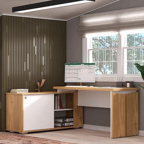 Essa escrivaninha versátil é perfeita para quem busca aliar estilo e praticidade. Ideal como mesa para escritório, consultórios, salas formais ou para criar o Home Office dos sonhos, ela se destaca pelo design cuidadosamente planejado. Design moderno e elegante, contando com um charmoso recorte lateral e detalhes em Tamburato 37 mm, que garantem robustez e estilo. Puxador de metal cromado sendo um toque sofisticado que faz toda a diferença. Ampla área de trabalho com um tampo espaçoso e uma superfície adicional no balcão, proporcionando conforto e organização. Espaço para armazenamento, o balcão integrado permite guardar documentos, livros e acessórios, mantendo tudo sempre à mão. Este móvel chegará em sua casa separado em 02 Volumes.