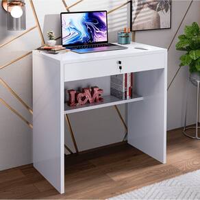 Não perca essa oportunidade de otimizar seu espaço com um móvel funcional e moderno! Aproveite agora e adicione um toque de sofisticação ao seu ambiente de trabalho. ? Produto Montado: Sim Acabamento do Tampo: Pintura UV Acompanha Manual de Instalação: Sim Ambiente Principal: Escritório codigo_ean: 7900288114297 Complexidade da Montagem: Alta: deve ser montado por um montador especializado Cor: Branco Cor da Base: Branco Cor do Produto: Branco Cor do Tampo: Branco Cor Flex: NÃO Cor Interna: Branco Dobrável: Não Escala de Brilho: Brilhante Espessura do Tampo: 12 mm Formato: Retangular Gaveta com Chave: Não Itens Inclusos: 1 Escrivaninha, Kit de Montagem Lado de Montagem: Direito Linha ou Coleção: Tesla Manual de Montagem e Instalação: https://product-hub-prd.madeiramadeira.com.br/992318/documents/3631f6e8-83c2-43cb-b44a-d32098f74eeb281696986717441309826858.pdf Marca: J&A Móveis Material da Estrutura: MDP Material do Tampo: MDP Material Principal: MDP Modelo Infantil: Não Necessita Montagem: Sim Origem do Produto: Nacional Pés com Regulagem de Altura: Não Peso: 10,5 kg Peso Máximo por Gaveta: 7 kg Peso Máximo por Prateleira: 6 kg Posição da Gaveta: Frontal Possui Acabamento na Parte de Trás: Não Possui Borda Arredondada: Não Possui Caixa de Tomada: Não Possui Espelhos: Não Possui Estante: Não Possui Gaveta para Pasta Suspensa: Sim Possui Gaveteiro: Não Possui Passa Cabos: Não Possui Porta Objetos: Não Possui Prateleiras: Sim Possui suporte para CPU: Não Possui Suporte para Teclado: Não Possui Vidro: Não Quantidade de Gavetas: 01 Gaveta Quantidade de Nichos: Não Quantidade de Prateleiras: 01 Prateleira Recomendações de Uso, Manutenção e Limpeza: Limpeza com Pano Seco Sistema de Montagem: Parafusos, Bucha, Porca Suporta Até (kg): 15 kg Suporta Braço Articulado: Não Tipo de Corrediça da Gaveta: Metálica Simples