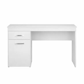 O modelo conta com tampo amplo para trabalho, 1 gaveta para organizar objetos pessoais e 1 compartimento com porta, ideal para guardar materiais e acessórios, mantendo o ambiente sempre em ordem. Os puxadores em ABS e as corrediças/dobradiças metálicas reforçam a durabilidade e o uso no dia a dia.