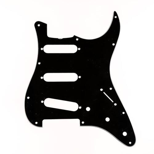 Escudo para Guitarra, estilo Stratocaster para 3 Singles (SSS), modelo 62 JPN Strat, 2.3mm de espessura e 11 furos, 3 camadas e acabamento em Preto, Spirit Guitar Parts - 200-BK.