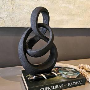 Escultura abstrata de elos Design preto em polirresina Decoração sofisticada Beleza e arte na decoração