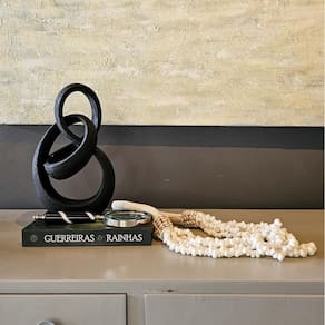 Adicione um toque de elegância e modernidade à sua decoração com nossa escultura abstrata de elos, inspirada no símbolo do infinito. Feita em polirresina preta, essa peça é perfeita para enriquecer qualquer ambiente com estilo e profundidade artística.