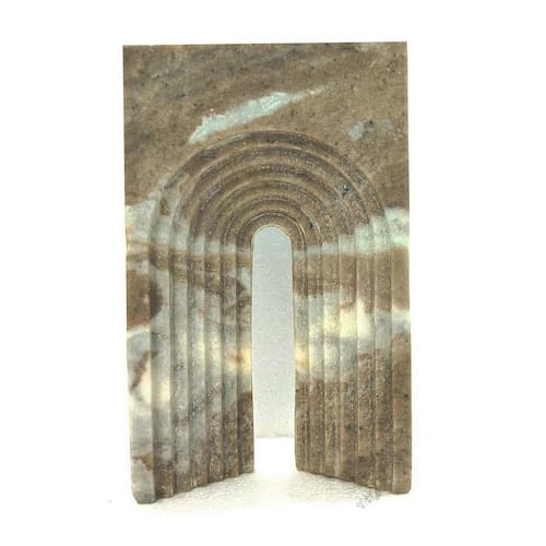Decoração de mesa Keveny, escultura em arco, mármore marrom texturizado, 11 polegadas