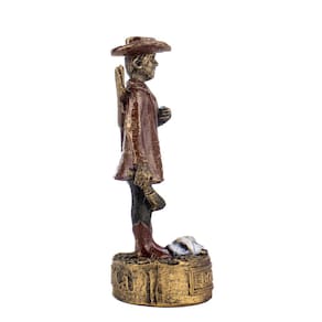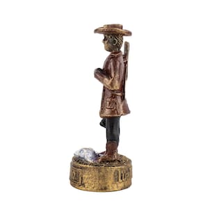 Conecte-se com a energia firme e protetora da linha dos Boiadeiros, uma das mais respeitadas dentro da Umbanda. Esta escultura de 10 cm, feita em resina com pintura vintage, representa a presença forte e serena desses guias espirituais. O Boiadeiro é uma entidade espiritual que atua com equilíbrio, coragem e sabedoria. Ligado ao trabalho da lida com o gado e à força da terra, ele representa o espírito do homem do campo, justo, determinado e resiliente.