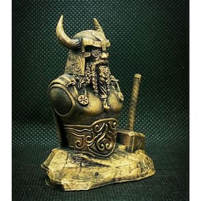 Material: resina sintética Tamanho do produto: 13* 8,5* 15 cm Peso do produto: 235Godin the All-Father Design — Uma impressionante escultura de busto de Odin, o deus nórdico da sabedoria, guerra e morte, segurando seu poderoso martelo Mjolnir, simbolizando força e conhecimento. Artesanato em resina intrincada — Feita de resina de alta qualidade com detalhes intrincados, esta peça apresenta elementos finamente pintados para aprimorar a textura e o realismo da aparência de Odin. Tamanho perfeito para exibição — Com 5,9 polegadas de altura, esta estatueta é ideal para qualquer prateleira, mesa ou área de exibição, trazendo o poder e o mistério da mitologia nórdica para sua casa. Ornamento simbólico do Deus Viking — Representando o papel atemporal de Odin na mitologia nórdica, esta escultura é perfeita para entusiastas da cultura viking e dos deuses nórdicos. Decoração versátil para casa ou escritório — Uma peça artística ousada, adequada para decoração com tema viking, fãs da mitologia nórdica ou como item colecionável exclusivo para qualquer espaço.