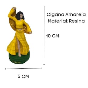 Escultura Cigana em Resina 11 cm Umbanda Candomblé Cor: Amarela Escultura Cigana em Resina 11 cm Umbanda Candomblé