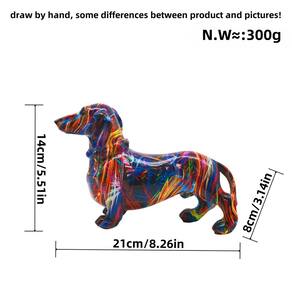 Material: Resina Tamanho: 21x8x14cm Peso: 300g Escultura artística moderna de cães — Esta estátua de dachshund apresenta um acabamento abstrato vibrante e multicolorido que traz energia e personalidade à sua decoração. Design exclusivo de Paint Splash — Coberta por uma mistura dinâmica de padrões de pinceladas, a escultura oferece uma aparência artística impressionante, adequada para interiores contemporâneos. Tamanho decorativo ideal — Medindo 21x8x14cm, cabe facilmente em mesas de escritório, mesas de console, estantes de livros e vitrines. Feito de resina durável — Feito com resina de alta qualidade para uso duradouro, mantendo detalhes esculturais finos e superfície brilhante. Toque de decoração versátil — perfeito para casas modernas, espaços com temas artísticos ou como um enfeite de mesa estiloso que adiciona charme divertido.