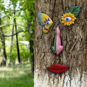 Material: Resina Tamanho: 1,2 a 10,5 cm, consulte a imagem para obter detalhes de tamanho específico Peso: 370 g ['Design caprichoso de rosto de árvore: esta decoração exclusiva de jardim combina asas de borboleta coloridas, olho de girassol, nariz verde-rosa e lábios vermelhos para formar uma escultura criativa de rosto de árvore. ', 'Artesanato em resina premium: feito de resina durável e resistente às intempéries, este boneco para uso externo resiste à chuva, luz solar e mudanças de temperatura, mantendo cores vibrantes. ', 'Estilo artístico abstrato: a combinação criativa de elementos inspirados na natureza e design surreal faz desta estátua uma impressionante obra de arte de parede ao ar livre. ', 'Fácil de montar: cada enfeite vem com um gancho traseiro ou superfície plana, permitindo uma instalação simples em árvores, cercas ou paredes para transformar instantaneamente a atmosfera do seu jardim. ', 'Ornamentos externos perfeitos: ideal para jardins, pátios, pátios ou pátios, esta escultura divertida adiciona um toque divertido e artístico à paisagem externa de sua casa.']