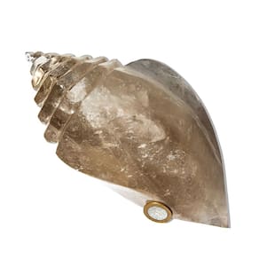 Concha do Mar em Quartzo Fumê – Proteção, Enraizamento e Harmonia Profunda para Sua Decoração A concha do mar, símbolo de fluidez, proteção e conexão com as águas da vida, representa o acolhimento das energias sutis e a sabedoria que vem das profundezas. Esculpida artesanalmente em Quartzo Fumê natural, esta peça une sofisticação orgânica e força energética, sendo ideal para ambientes que buscam equilíbrio, estabilidade e serenidade. Benefícios do Quartzo Fumê: Reconhecido por sua poderosa ação de limpeza e aterramento, o Quartzo Fumê atua energeticamente promovendo:\nProteção contra energias negativas e densas\nEstabilidade emocional e clareza em momentos de mudança\nConexão com a terra e com o momento presente\nTransmutação de padrões limitantes e bloqueios\nA concha em Quartzo Fumê é perfeita para espaços de meditação, descanso ou transformação interior, sendo também uma excelente peça decorativa para ambientes que pedem elegância discreta e significado profundo. Detalhes da Escultura: Pedra: Quartzo Fumê NaturalFormato: Concha do Mar (artesanato manual)Acabamento: Polido com brilho suave e textura naturalCor: Marrom translúcido a cinza escuro, com variações naturaisTamanho Aproximado: 23cm (podendo variar)Peso Médio: 2,7kgOrigem: Cristais de Curvelo – MG, Brasil Cuidados: Limpar com pano seco ou levemente umedecido. Para realçar o brilho e conservar a peça, pode-se aplicar óleo mineral de forma moderada. Observação Importante: Cada escultura é única, feita com pedra natural. Variações de cor, veios, marcas ou pequenas inclusões são características autênticas do Quartzo Fumê e valorizam sua origem e beleza natural. As fotos são ilustrativas e representam o padrão de qualidade do produto. Marca: Não Informado