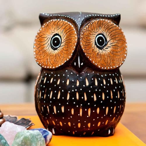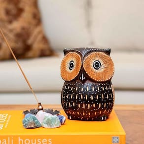 A coruja é a ave soberana da noite e para muitos povos elas simbolizam o mistério, a inteligência, a sabedoria e o conhecimento. Simboliza também a reflexão e o conhecimento intuitivo. Nossa coruja decorativa é perfeita para trazer charme ao ambiente. É feita de madeira balsa e pintada à mão com a técnica dots muito utilizada pelos balineses. Adquira a sua coruja e deixe a sua casa ou escritório mais bonito.