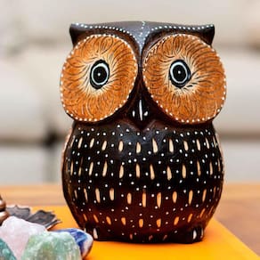 A coruja é a ave soberana da noite e para muitos povos elas simbolizam o mistério, a inteligência, a sabedoria e o conhecimento. Simboliza também a reflexão e o conhecimento intuitivo. Nossa coruja decorativa é perfeita para trazer charme ao ambiente. É feita de madeira balsa e pintada à mão com a técnica dots muito utilizada pelos balineses. Adquira a sua coruja e deixe a sua casa ou escritório mais bonito.