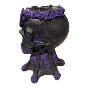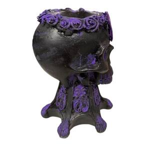 Escultura Crânio Castiçal Preto Com Pentagrama 13 cm Resina Escultura Crânio Castiçal Preto Com Pentagrama 13 cm Resina