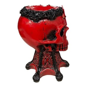 Escultura Crânio Castiçal Vermelho Com Tridente 13 cm Resina Escultura Crânio Castiçal 13 cm em Resina Vermelho