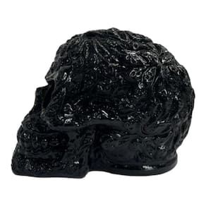 Escultura Crânio Relevos Preto em Resina Escultura Crânio Relevos Preto em Resina