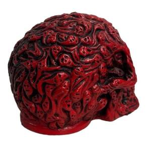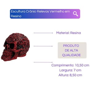 Escultura Crânio Relevos Vermelho em Resina Escultura Crânio Relevos Vermelho em Resina