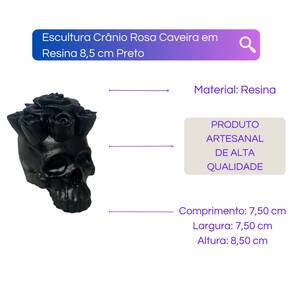 Escultura Crânio Rosa Caveira em Resina 8,5 cm Preto