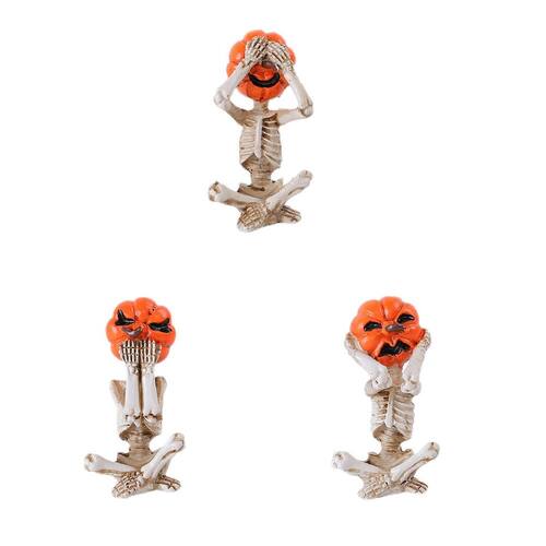 Material: resina sintética Tamanho: 3-21 cm Peso: 210 g ['Design criativo de Halloween] — Apresenta três figuras esqueléticas com cabeças de abóbora em poses de “não veja o mal, não ouça o mal, não fale o mal”, adicionando humor e assustador às suas decorações. ', 'Material de resina de alta qualidade — Feito de resina sintética durável com acabamento branco antigo e abóboras alaranjadas vivas para uma aparência realista e festiva. ', 'Compactas e atraentes — Tamanho perfeito para mesas, prateleiras ou expositores de jardim; essas miniestátuas trazem uma atmosfera divertida e misteriosa a qualquer espaço. ', 'Uso decorativo versátil — Adequado para jardins, pátios, pátios ou ambientes internos de Halloween, aprimorando o ambiente de férias interno e externo. ', 'Ornamento sazonal exclusivo — Este conjunto de figuras de abóbora em forma de esqueleto é uma adição impressionante a qualquer cena de Halloween, oferecendo um toque artístico e uma qualidade duradoura.']