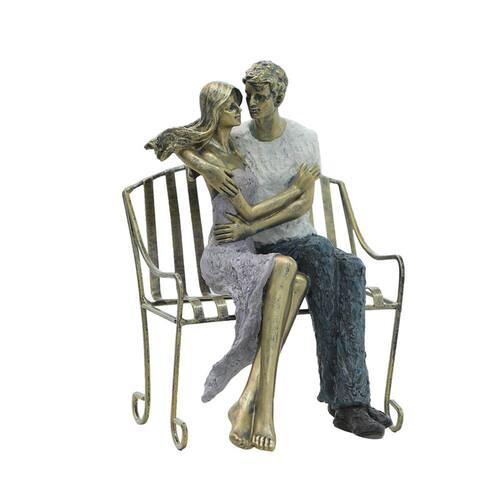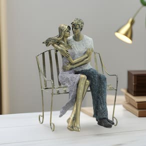 Material: Ferro Tamanho: 22 x 18,5 x 28 cm Cena emotiva de casal — Esta escultura retrata um casal romântico sentado perto de um banco, capturando um momento de conexão e intimidade com uma linguagem corporal realista. Design europeu antigo — Projetado em um estilo europeu clássico com acabamento em bronze, o ornamento adiciona charme vintage e apelo artístico atemporal a qualquer interior. Construção com materiais mistos — Feita de resina de alta qualidade e uma estrutura de bancada de ferro, esta peça oferece escultura detalhada e estrutura durável. Perfeito para decoração romântica — Ideal para exibição em salas de estar, quartos, entradas ou prateleiras, criando uma atmosfera de aconchego e elegância. Artesanato detalhado — A superfície texturizada, as roupas esvoaçantes e a postura afetuosa enfatizam a qualidade artesanal e aprimoram a narrativa visual dessa figura artística.
