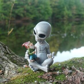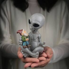 Material: resina sintética Tamanho: 16,5* 10,16* 8,9 cm Peso: 300 g ['Playful Alien & Gnome Design — Apresentando um alienígena amigável segurando um gnomo de jardim, esta escultura adiciona um toque humorístico e criativo à decoração externa. ', 'Artesanato em resina — Feita de resina sintética durável, a figura exibe detalhes finos, faces expressivas e acabamentos suaves adequados para uso a longo prazo. ', 'Whimsical Garden Accent — Perfeito para pátios, gramados, canteiros de flores ou áreas de varanda, aprimorando as cenas do jardim com um tema único e divertido. ', 'Conversation Starter — A interação encantadora entre o alienígena e o gnomo cria um ponto focal delicioso que chama a atenção e desperta a curiosidade. ', 'Acabamento resistente às intempéries — Projetada para ser colocada ao ar livre, a estátua mantém sua aparência em várias condições climáticas, mantendo um caráter brilhante.']