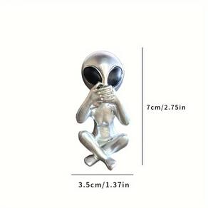 Material: resina Tamanho: 3,5* 7 cm Peso: 60 g ['• Design alienígena expressivo: esta figura alienígena prateada em uma pose de “não falar” de pernas cruzadas adiciona um elemento divertido e misterioso às telas de jardim, prateleira ou mesa. ', '• Figura artística inspirada em OVNIs: com grandes olhos negros e forma extraterrestre elegante, ela se destaca como um ornamento peculiar para entusiastas da ficção científica e temas criativos de decoração. ', '• Material de resina durável: feita de resina sólida, a escultura oferece durabilidade duradoura e acabamento metálico suave, adequado para ambientes internos e externos. ', '• Compacto e versátil: pequeno e leve, cabe facilmente em vasos, bordas, tampos de mesa ou terrários, aprimorando cenas de decoração exclusivas. ', '• Toque decorativo moderno: ideal para pátios, escritórios residenciais, varandas ou cantos de quintais, esta estátua alienígena traz charme criativo e apelo à conversação.']