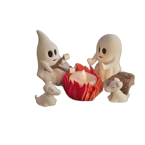 Material: Resina Tamanho: 16 cm × 7,5 cm × 16 cm Peso: 245 g ['Adorável design de fogueira fantasma: apresenta dois fantasmas amigáveis e dois cachorros pequenos assando marshmallows ao redor de uma fogueira acesa, criando uma atmosfera calorosa e divertida de Halloween. ', 'Construção em resina de alta qualidade: feita de resina durável com detalhes pintados à mão, esta escultura é resistente às intempéries e perfeita para exibição externa ou interna. ', 'Efeito de vela LED: a luz embutida adiciona um efeito de chama cintilante e aconchegante, aprimorando o ambiente noturno do jardim e trazendo um toque de magia à decoração do seu pátio. ', 'Tamanho decorativo perfeito: medindo 16 × 7,5 × 16 cm e pesando 245 g, ideal para mesas, gramados, caminhos de jardim ou vitrines. ', 'Enfeite encantador de Halloween: uma adição deliciosa às decorações sazonais, combinando elementos assustadores e fofos para uma atmosfera equilibrada e convidativa']