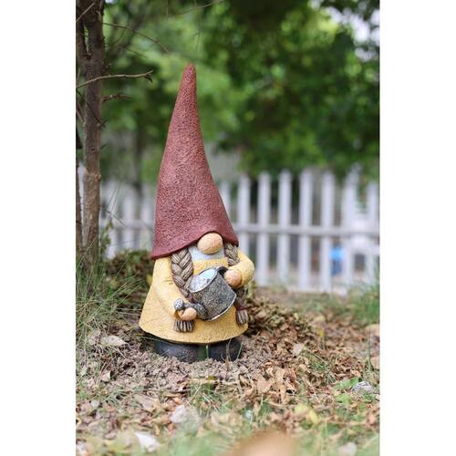 Hi-Line Gift Ltd. Gnomo de Jardín Femenino de 41 cm para Regar Plantas - Material Duradero para Exteriores: Fabricado con poliresina de alta calidad, que garantiza durabilidad y resistencia a los elementos exteriores. - Diseño Chic: La figura del gnomo irradia estilo y sofisticación, mejorando la estética de tu espacio exterior. - Dimensiones y Peso: 15.5 cm x 17 cm x 41 cm y pesa aproximadamente 0.8 kg. - Añadido Encantador: El diseño del gnomo de jardín aporta un toque mágico y acogedor a tu espacio al aire libre. - Resistente a la Intemperie: Diseñado para soportar diversas condiciones climáticas, manteniendo su atractivo en todo momento.