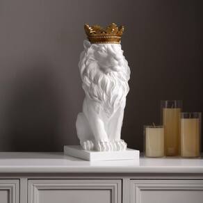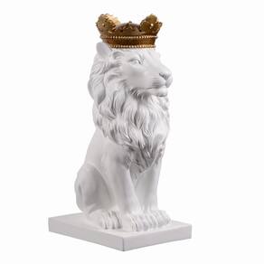- Cor branca ousada: o elegante acabamento branco da estátua do leão realça seu apelo moderno, proporcionando um contraste impressionante com a coroa dourada para um efeito visualmente impressionante.