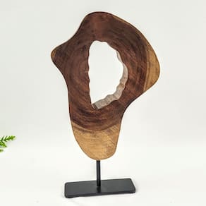 Design único e exclusivo: cada peça é feita a partir de tronco natural de madeira, com detalhes únicos Combinação de materiais: madeira natural com base de metal para um contraste sofisticado Estilo rústico e contemporâneo: ideal para criar um ambiente acolhedor e moderno Versátil na decoração: pode ser colocada em salas, escritórios, halls ou estantes Durabilidade: materiais de alta qualidade, com boa resistência