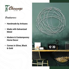 Escultura de Pared Redonda Abstracta Cheung's Denine de Metal Negro de 25" - Moderna y Artesanal para Sala de Estar - Material Premium y Calidad: Esta escultura redonda abstracta Cheung's Denine está hecha a mano en metal duradero, asegurando tanto longevidad como un acabado lujoso. Su construcción de alta calidad la convierte en una pieza destacada en cualquier decoración. - Diseño y Estilo Moderno: Con un diseño elegante y contemporáneo, esta escultura añade un toque sofisticado a tu espacio. Su forma abstracta realza el interés visual de tus paredes, perfecta para ambientes modernos. - Tamaño y Dimensiones: Con un diámetro de 25 pulgadas (64 cm), esta escultura redonda es compacta pero de gran impacto. Se adapta bien a espacios variados, ideal para habitaciones pequeñas, salas de estar o como pieza central en espacios más grandes. - Color y Acabado Sobresalientes: Terminada en un intenso color negro, esta escultura desprende sofisticación. El acabado liso realza su atractivo moderno, permitiendo combinarse fácilmente con diversos esquemas de color. - Uso Versátil y Multipropósito: Perfecta para cualquier habitación, la escultura abstracta redonda Cheung's Denine es un elemento decorativo versátil para salas, pasillos u oficinas. Úsala como punto focal impresionante o como un detalle llamativo en tu decoración. - Incluye aberturas en la parte posterior para montar la pieza en la pared. - Medidas: Ancho: 64.2 cm x Profundidad: 1.3 cm x Alto: 63.5 cm. - No incluye herrajes para colgar, como clavos, tornillos o anclajes.