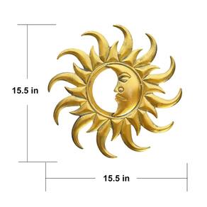 Arte de pendurar na parede Hi-Line Gift Ltd Golden Half Moon Sunface Metal Garden Decor