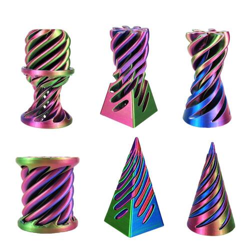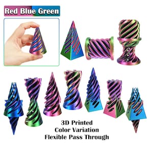 - Artesanato e materiais exclusivos: o conjunto de brinquedos fidget impressos em 3D que parece impossível de viajar é feito de material PLA combinado com tecnologia de impressão 3D, garantindo a durabilidade dos brinquedos figit enquanto fornece a cor laser psicodélica dos brinquedos fidget impressos em 8D, o que é impossível. Uma cor diferente aparece toda vez que o cone viaja através do brinquedo fidget cone espiral.