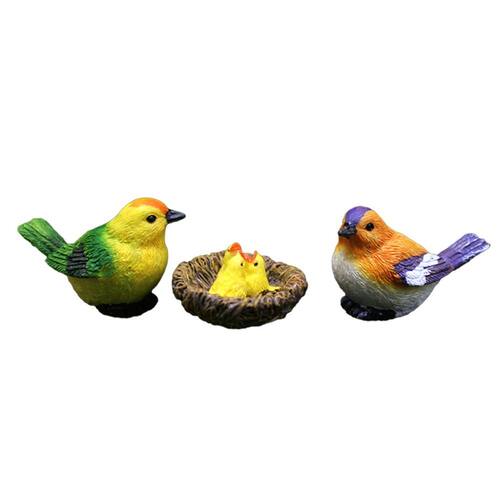 Material: Resina Tamanho: 3,2-5,3 cm Peso: 72 g ['Charming Bird Family Design — Apresenta dois pássaros adultos e um filhote em um ninho, criando uma exibição de jardim animada e emocionante. ', 'Cores brilhantes e realistas — Cada figura de pássaro é pintada à mão em tons vibrantes de amarelo, verde e laranja para uma aparência natural e atraente. ', 'Material de resina durável — Feito de resina de alta qualidade que é à prova d'água, resistente ao desbotamento e adequada para decoração interna e externa. ', 'Compact Mini Size — Perfeito para jardins de fadas, vasos de plantas, terrários ou displays de mesa, adicionando um toque da natureza a qualquer ambiente. ', 'Decoração de jardim versátil — ideal para pátios, gramados, varandas ou paisagens em miniatura, aprimorando a decoração do seu jardim com calor e detalhes.']