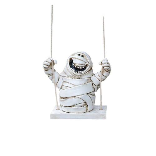 Material: Resina Tamanho: 5,5 cm × 3,1 cm × 5,5 cm Peso: 56 g ['Playful Mummy on a Swing Design — Esta figura criativa de múmia apresenta uma alegre múmia embrulhada sentada em um balanço, trazendo humor e personalidade ao seu jardim, pátio ou área interna. ', 'Artesanato durável em resina — Feita de resina de alta qualidade, esta estátua suspensa é resistente às intempéries, à prova de desbotamento e adequada para decoração externa de longo prazo. ', 'Fácil de pendurar em qualquer lugar — Equipado com corda resistente para pendurar facilmente em árvores, cercas, varandas, varandas ou ganchos internos para um toque decorativo assustador e divertido. ', 'Compacta e atraente — Medindo 5,5 × 3,1 × 5,5 cm, esta pequena escultura adiciona um charme distinto a espaços limitados sem sobrecarregar sua decoração. ', 'Perfeito para ambientes sazonais — Ideal para exibições de Halloween ou ornamentos de jardim peculiares durante todo o ano, criando uma atmosfera animada e divertida em qualquer ambiente']