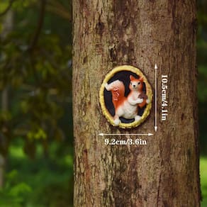 Material: Resina Tamanho: 9,2 cm × 10,5 cm Peso: 120 g ['Adorável design de esquilo: esta decoração de jardim em resina apresenta um esquilo brincalhão segurando uma bolota, espreitando de um buraco de árvore, adicionando um toque animado de floresta ao seu espaço ao ar livre. ', 'Artesanato em resina de alta qualidade: feita de resina durável e resistente às intempéries, esta escultura é à prova d'água, resistente ao desbotamento e adequada para todas as estações de exibição ao ar livre. ', 'Fácil instalação na parede: leve e projetada com uma parte traseira plana, esta figura pode ser facilmente montada em árvores, cercas ou paredes de jardim para um apelo visual encantador. ', 'Detalhes realistas pintados à mão: cada enfeite é pintado à mão com textura fina e tons naturais de marrom, criando uma estátua de esquilo vívida e realista para sua casa ou jardim. ', 'Ornamentos versáteis para exteriores: perfeitos para jardins, pátios, pátios ou varandas, esta peça decorativa realça sua paisagem natural com diversão e aconchego.']