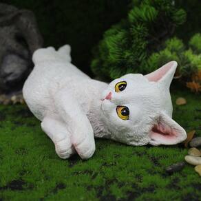 Material: Resina Tamanho: 26,5 × 2,5 × 7 CM Peso: 420 g ['Design encantador: apresenta uma escultura realista de gato branco, lindamente detalhada em uma posição relaxante, perfeita para adicionar um toque extravagante ao seu jardim ou casa. ', 'Material de resina durável: feito de resina de alta qualidade, este enfeite de jardim é robusto, resistente às intempéries e projetado para uso externo de longa duração. ', 'Detalhamento realista: pintado à mão com grande atenção aos detalhes, a expressão divertida e a textura realista do pelo do gato o tornam uma adição atraente a qualquer ambiente. ', 'Decoração versátil: ideal para jardins, gramados, pátios ou até mesmo como uma peça de destaque exclusiva para sua sala de estar ou mesa de escritório. Esta estátua de gato se encaixa perfeitamente em vários espaços. ', 'Tamanho perfeito: com dimensões de 26,5 × 2,5 × 7 cm, é uma peça de decoração perceptível, mas não impressionante, que adiciona charme e diversão a qualquer local.']