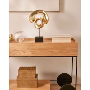 Escultura Decorativa Abstrata em Poliresina Dourada 38cm