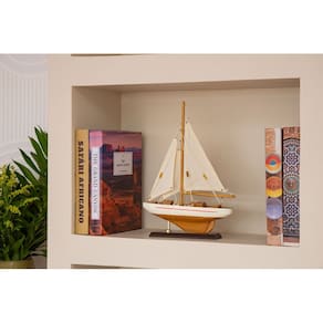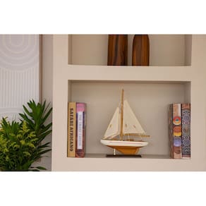 A Escultura Decorativa Barco em Madeira é a escolha ideal para compor ambientes com estilo náutico, clássico ou contemporâneo. Com acabamento detalhado e velas em tecido, a peça transmite charme, leveza e sofisticação, sendo perfeita para decorar salas, escritórios, estantes, aparadores e áreas gourmet.