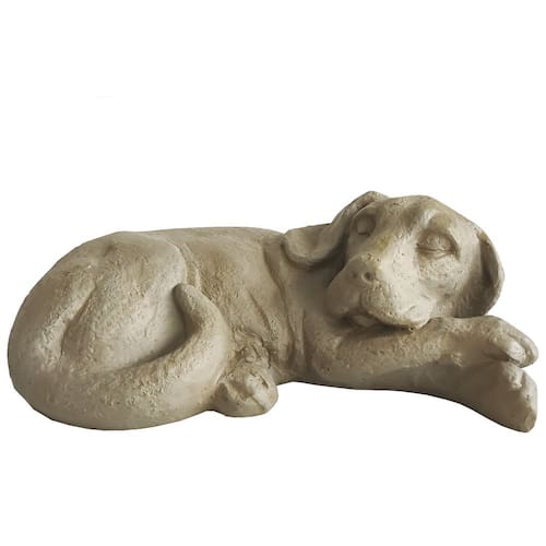 A escultura de um cachorro dormindo, feita em resina, captura a serenidade e o aconchego de um momento de descanso profundo. O cão, retratado com detalhes realistas, está repousando com os olhos fechados, a cabeça suavemente apoiada sobre suas patas, transmitindo uma sensação de tranquilidade e paz. O acabamento feito em resina, suave e discreto, permitindo que os detalhes sutis da peça se destaquem de forma mais natural. A obra evoca ternura e calma, sendo uma peça perfeita para quem aprecia a beleza dos animais e a arte que transmite emoções sutis e acolhedoras.