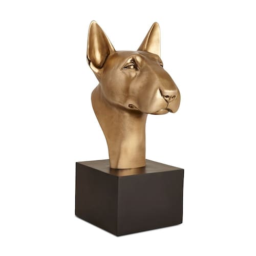 Escultura Decorativa Cachorro em Poliresina Dourada