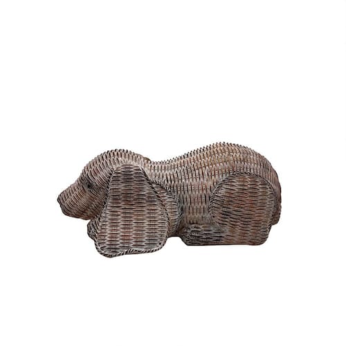 Escultura Decorativa Cachorro em Resina Marrom e Branco