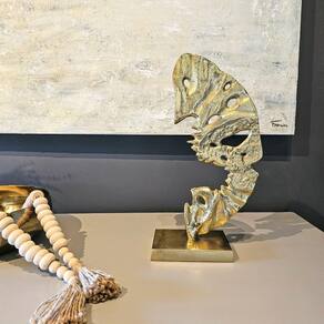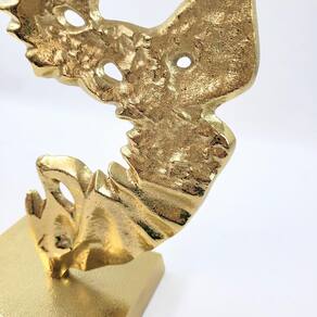 Luxo e Modernidade: Acrescente um elemento de destaque que simboliza elegância e bom gosto. Peça Versátil: Perfeita para diversos ambientes, seja em casa, no escritório ou em espaços comerciais. Detalhes que Encantam: O acabamento martelado em dourado faz desta escultura um verdadeiro objeto de arte.
